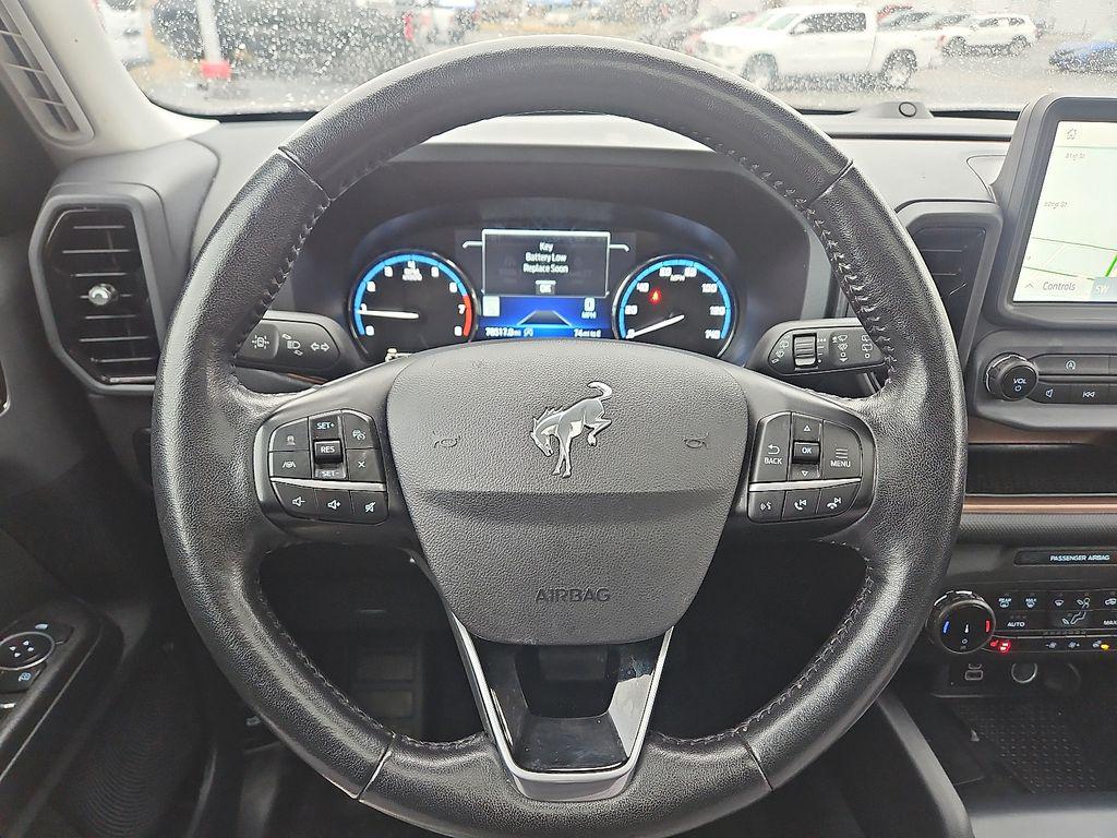 Start this unit from inside with remote start. Good News! This certified CARFAX 1-owner vehicle has only had one owner before you. This Ford Bronco Sport has automated speed control that adjusts to maintain a safe following distance, enhancing highway driving convenience. You'll never again be lost in a crowded city or a country region with the navigation system on this mid-size suv. This 2023 Ford Bronco Sport has a clean CARFAX vehicle history report. The vehicle offers Android Auto for seamless smartphone integration. The leather seats in this mid-size suv are a must for buyers looking for comfort, durability, and style. This Ford Bronco Sport features a hands-free Bluetooth phone system. This unit is pure luxury with a heated steering wheel. The Ford Bronco Sport's Cross-Traffic Alert: Safeguarding you from unexpected traffic when reversing. The rear parking assist technology on this unit will put you at ease when reversing. The system alerts you as you get closer to an obstruction.