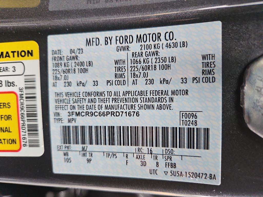 Ford Co-Pilot360 Assist+: Evasive Steering Assist; Voice-Activated Touchscreen Navigation System; Intelligent Adaptive Cruise Control with Stop and Go. Tech Package: Bang & Olufsen Sound System; Wireless Charging Pad; HD Radio; Universal Garage Door Opener (UGDO). Equipment Group 300A: 18"" Ebony Black Wheels; 3.80 Axle Ratio; 1.5L EcoBoost Engine; 8-Speed Automatic Transmission; 225/60R18 All Season Tires Bsw; Leather Trimmed Heated Sport Contour Bucket Seats; 4. 630 lbs GVWR; AM/FM Stereo. Power Moonroof. Cargo Management System. **Equipment listed is based on original vehicle build and subject to change. Please confirm the accuracy of the included equipment by calling the dealer prior to purchase.**