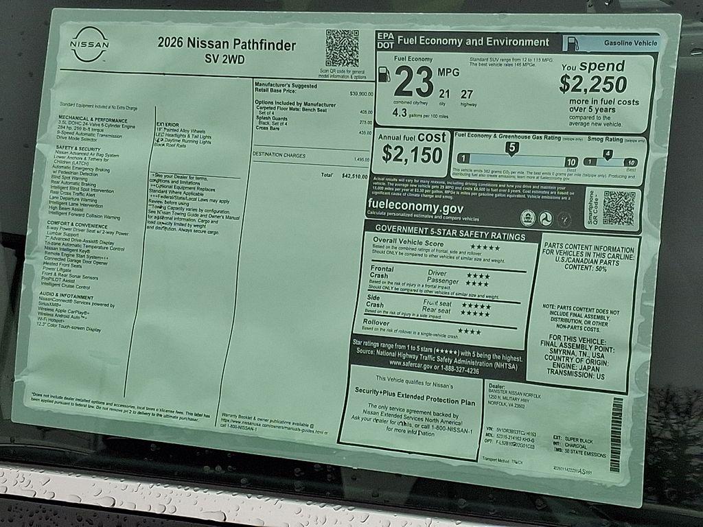 2026 Nissan Pathfinder SV 4WD — V6, 3.5L Gasoline — Norfolk, VA This 2026 Nissan Pathfinder SV in Norfolk, VA combines rugged capability with family-friendly comfort. Powered by a smooth and responsive V6 3.5L gasoline engine and equipped with 4WD, this SUV is ready for coastal commutes, weekend escapes, and challenging road conditions. The Nissan Pathfinder SV offers modern convenience features including Remote Start for quick climate comfort, Automatic Climate Control for consistent cabin temperatures, and Android Auto for seamless smartphone integration on the go. Safety and parking are simplified with Rear Parking Sensors and a Back-Up Camera, making tight Norfolk parking spots and busy driveways easier to navigate. The spacious interior provides flexible seating and cargo options, ideal for families or active lifestyles. This vehicle represents outstanding value — competitively priced and advertised as the best price in the area, delivering a smart combination of performance, tech, and safety without compromise. If you want a dependable, well-equipped 4WD SUV with a strong V6 powertrain and the latest essential features, this Nissan Pathfinder SV is an excellent choice. Contact us to schedule a test drive in Norfolk, VA and see why this is the best-priced 2026 Nissan Pathfinder SV available locally. Act quickly — great value vehicles move fast.